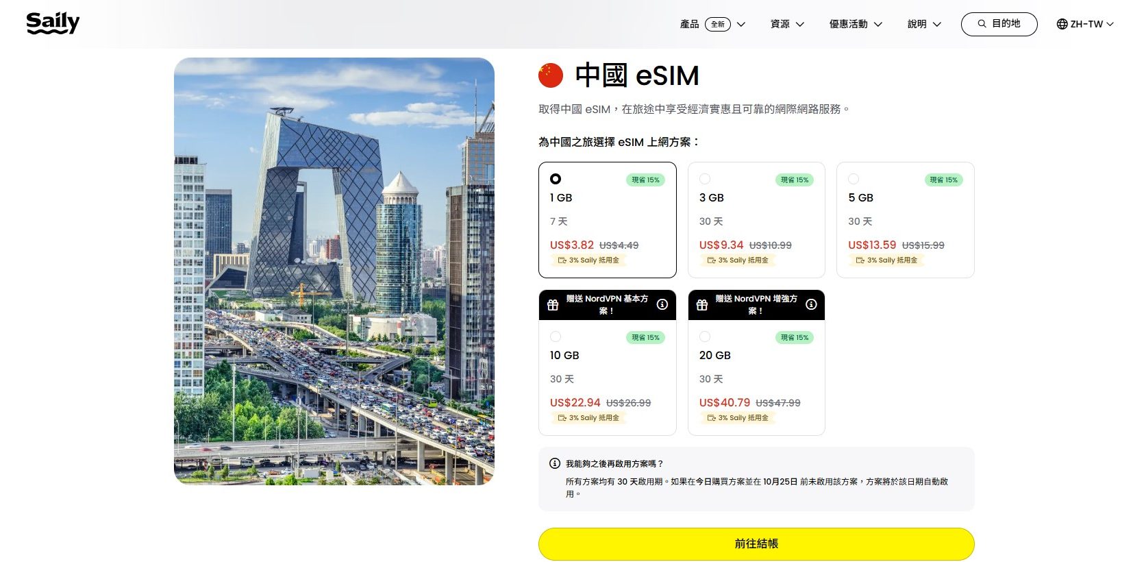 Saily eSIM支援超過190個國家,上網方案根據流量多寡、天數有所不同,用戶可以自行根據需求選擇適合的方案,以下列出一些熱門旅遊國家的方案價格 (以下價格以美金計算):